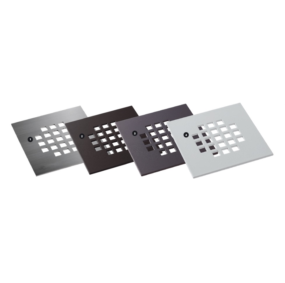 • grille acier inox gris ardoise 7015 ou blanc 9010 pour apporter une touche plus métallique au receveur