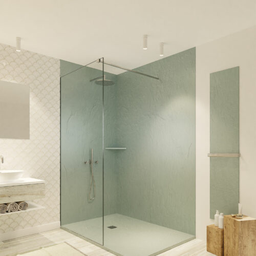 Receveur résine imitation pierre GRAPHITE avec caniveau